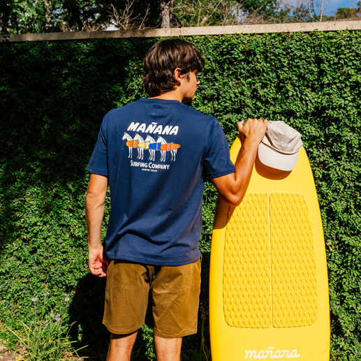 Where the desert meets the swell—introducing the Four Horses Tee. This design captures the spirit of summer in the Lone Star State: four wild horses saddled up with surfboards, ready to ride heat waves and dusty trails alike.